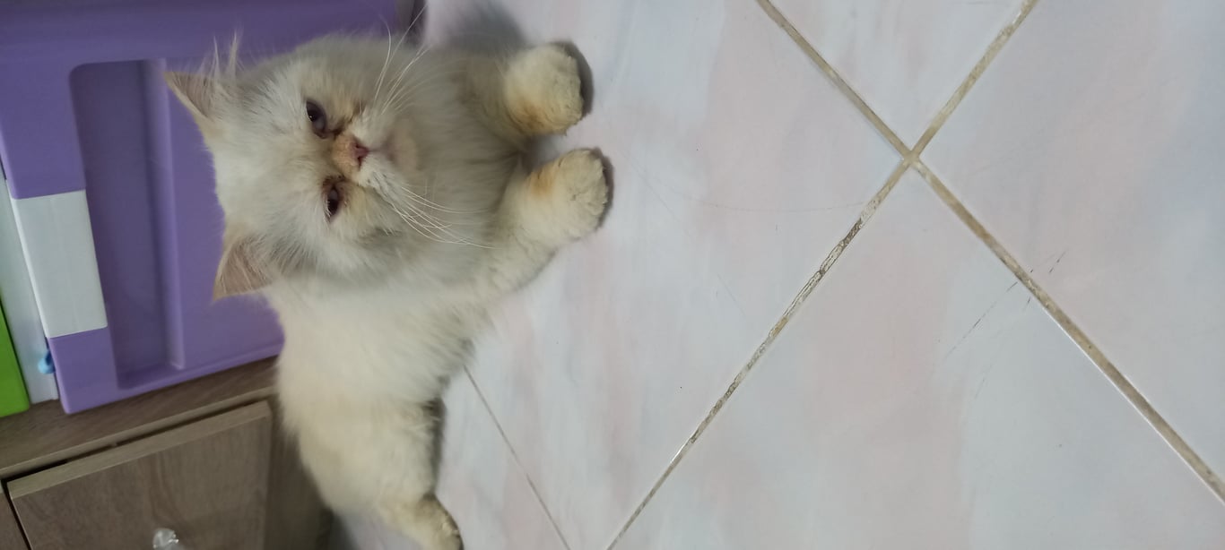 ขนสีขาว ตาสีฟ้า ขี้อ้อน ไม่กลัวคน เชื่อง