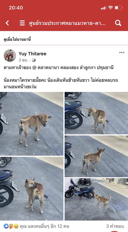 จาก เพจ ศูนย์รวมประกาศหมาแมวหาย ตามหาเจ้าของ @ ตลาดนานา คลองสอง ลำลูกกา ปทุมธานี น้องหมาใครหายมั้ยคะ น้องเดินหันซ้ายหันขวา ไม่ค่อยหลบรถ มานอนหน้าเซเว่น