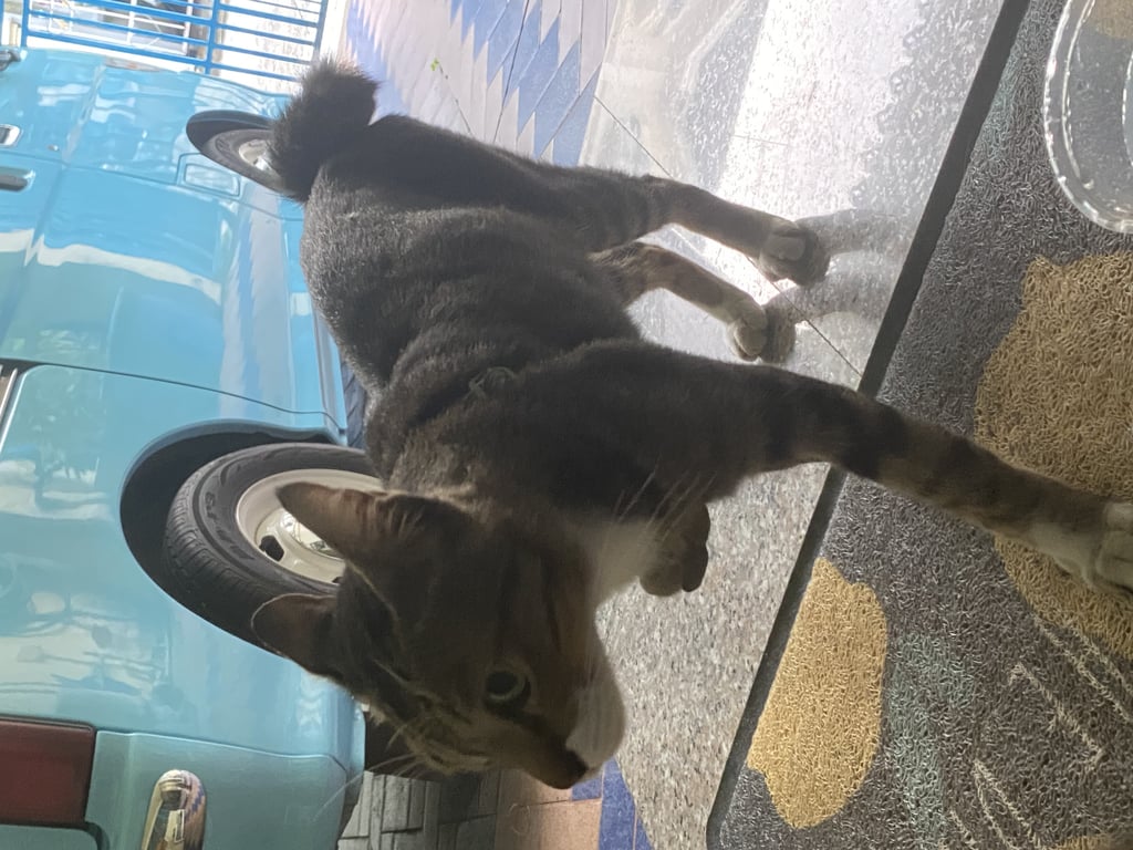 หางขอด มีปลอกคอข้างหน้าเป็นตุ๊กตานิ่มๆน่าจะสีเทา
