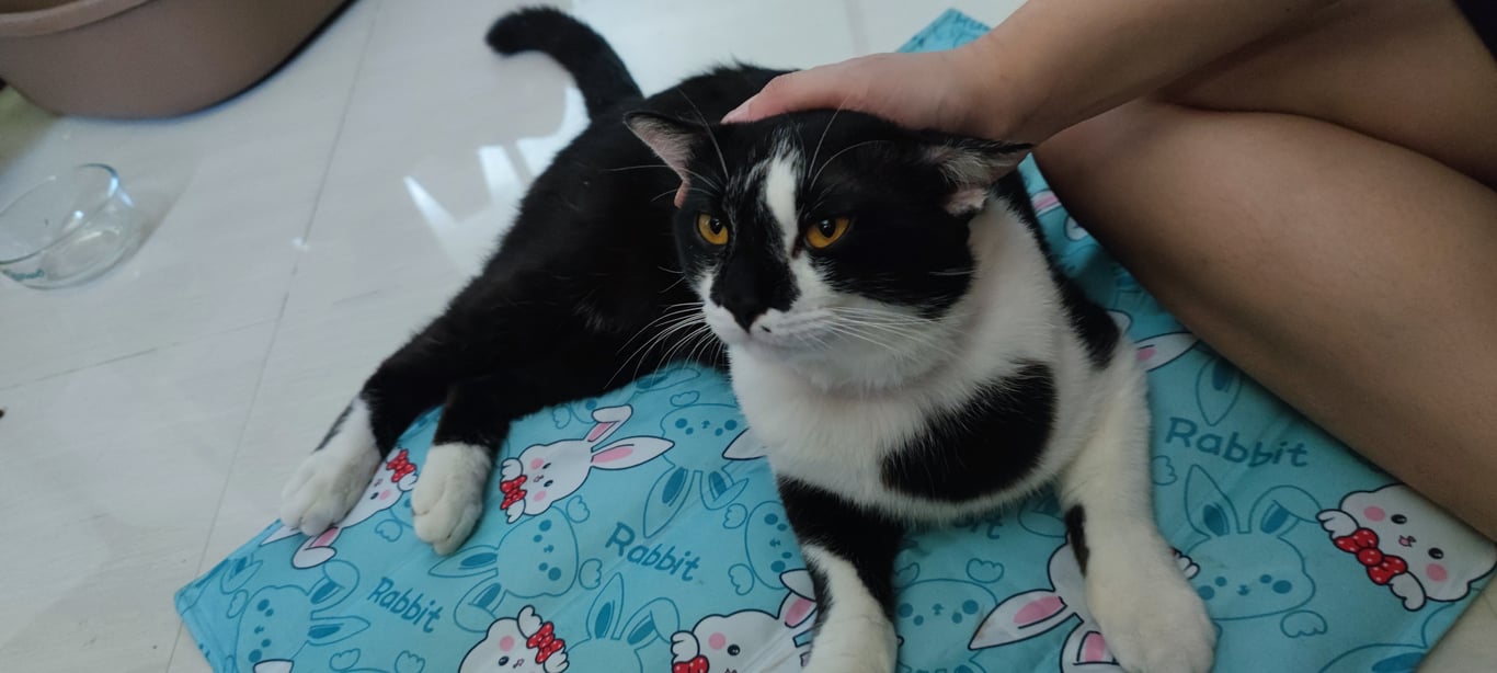 นิสัยเรียบร้อย ค่อนข้างมีอายุ เล็บโดนตัด ไม่กัด ไม่ข่วนเลย กินน้ำเก่ง ขี้ร้อน สุขุมมาก น่าจะผสมพันธ์ขนยาวกับแมวจร ไม่รู้ว่าเรียกพันธ์อะไร