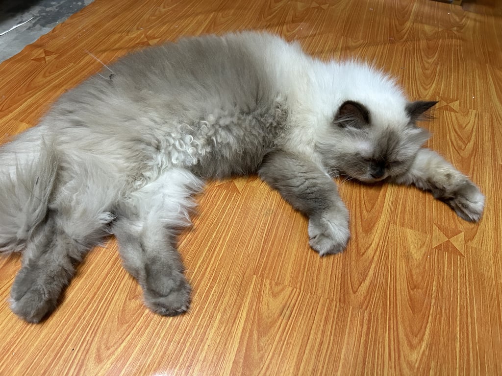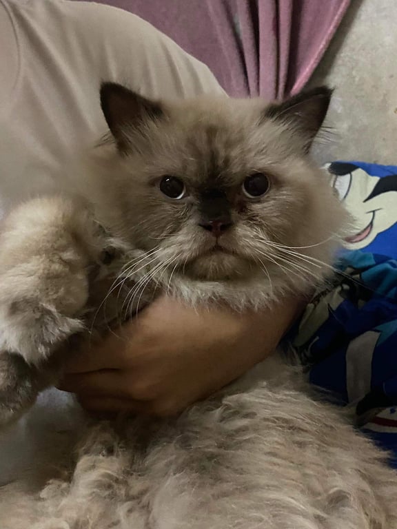 หน้าดำ หูดำ ลำตัว ขาวและดำ สีวิเชียรมาส แต่เป็นเปอร์เซีย เพศผู้ ทำหมันแล้ว มีนำตา ต้องคอยเช็ด นิสัยขี้อ้อนมาก ชอบให้คนลูป