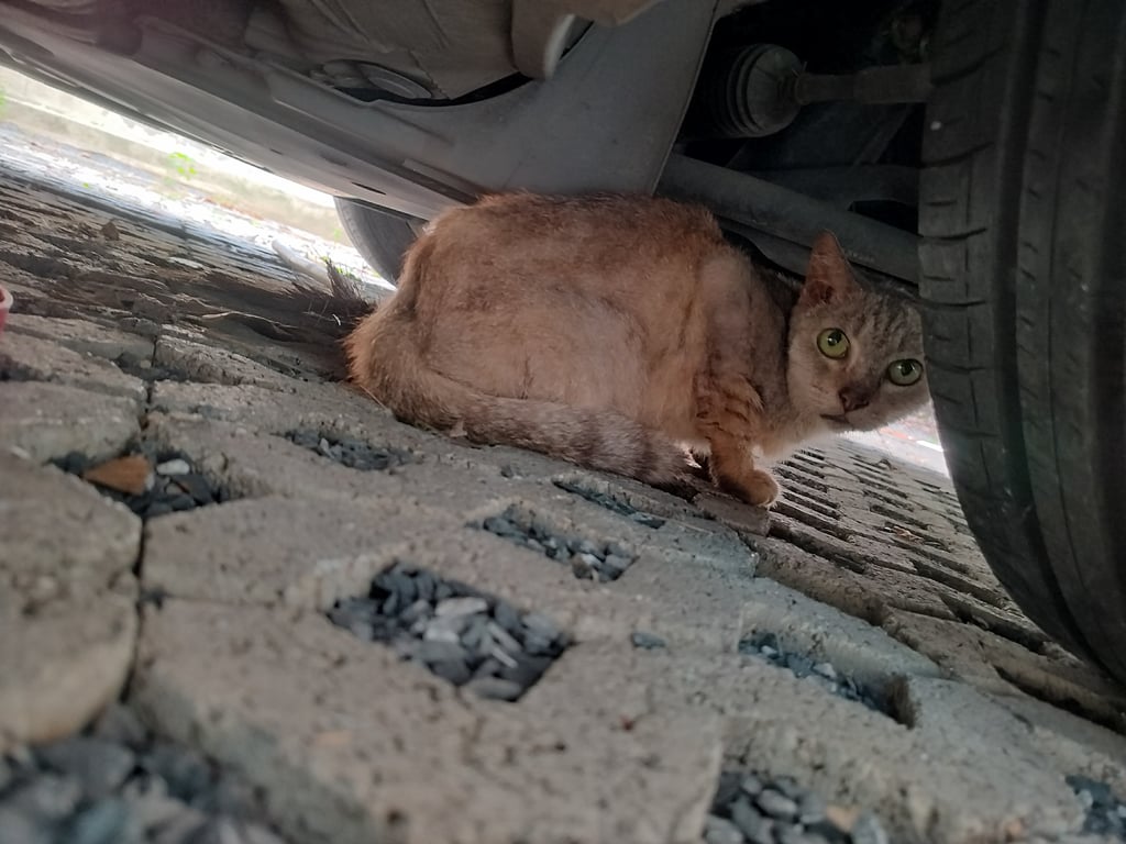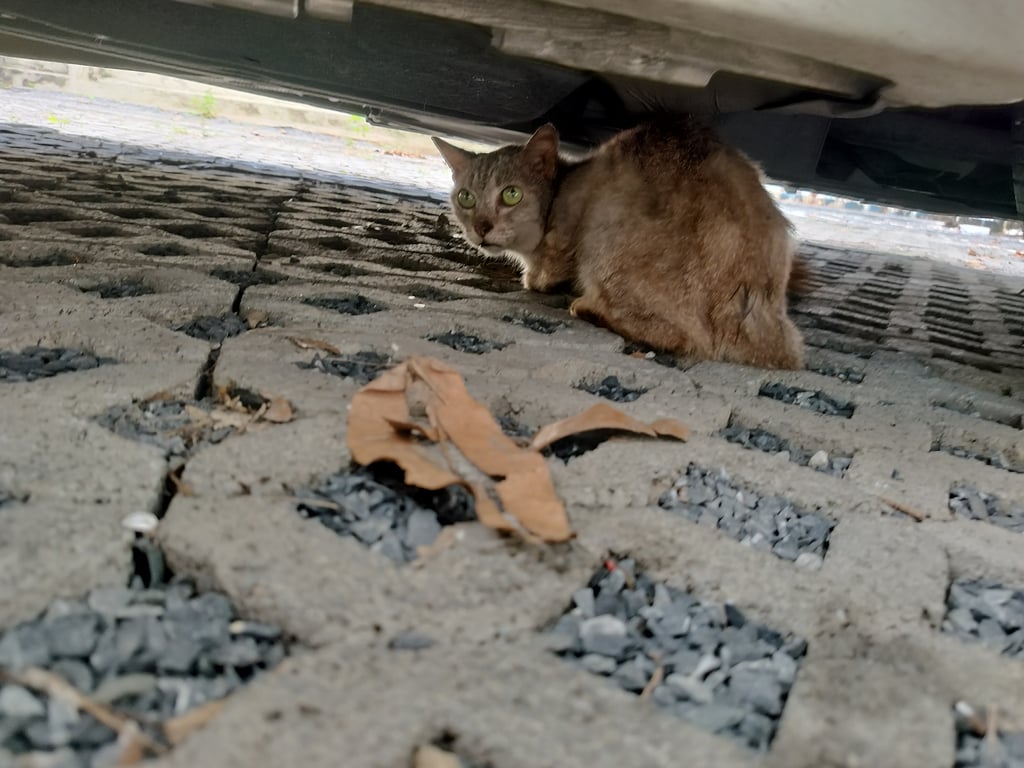 น้องแอบมากินข้าวในบ้าน 2รอบ รอบล่าสุดคิดว่าหนีไปแล้ว แต่ดันแอบใต้รถ จับหมาที่บ้านไว้ไม่ทัน ฝังให้เรียบร้อยแล้วค่ะ เผื่อเจ้าของมาเห็น