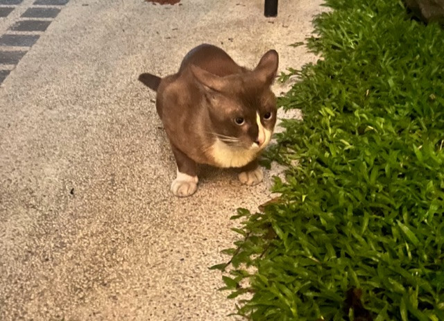 สีน้ำตาล มีแสกสีขาวถึงปาก ปลายหางเป็นจุดขาว หน้าอกสีขาว ปลายเท้าหน้าสีขาวเป็นถุงเท้า