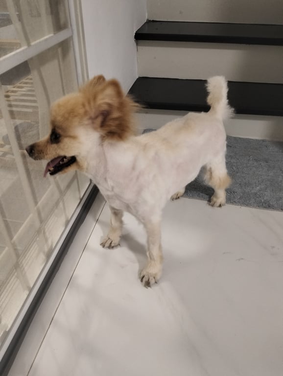 ตัดขนเกรียนเหลือแต่ผม ดวงตาข้างซ้ายมีต้อ