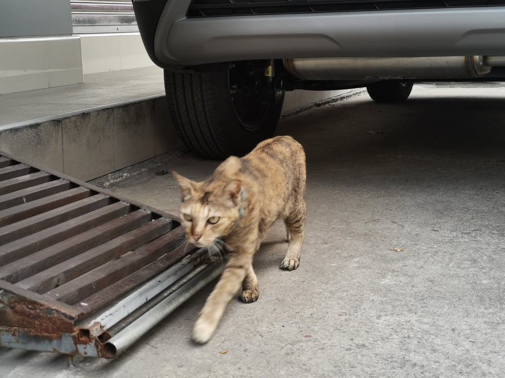 แมวน่าจะติดรถหลงมา ตอนนี้อยู่ที่ริมถนนสุขุมวิท แถวบางจาก ตามแผนที่