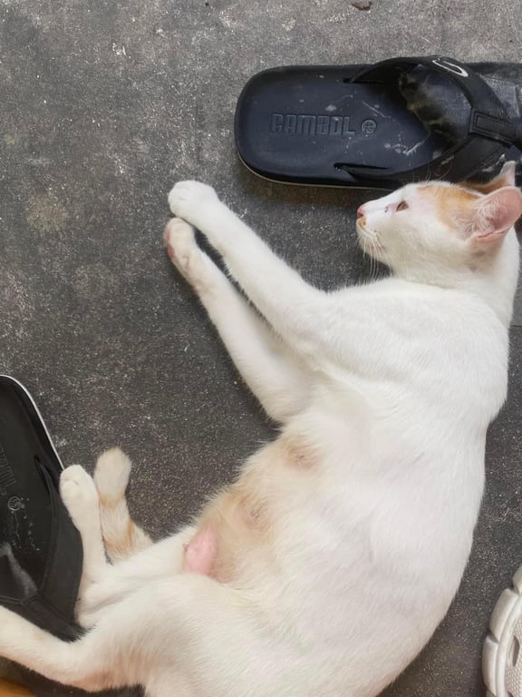 ใบหูมีสีส้ม จมูกมีสีส้ม เป็นแมววัยรุ่น เพิ่งคลอด