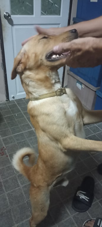 สุนัขมีขนาดกลาง เชื่อง เป็นมิตร ตาสีน้ำตาล พบเจอที่หมู่บ้านพนาสนธิ์ไพรเวทโอม