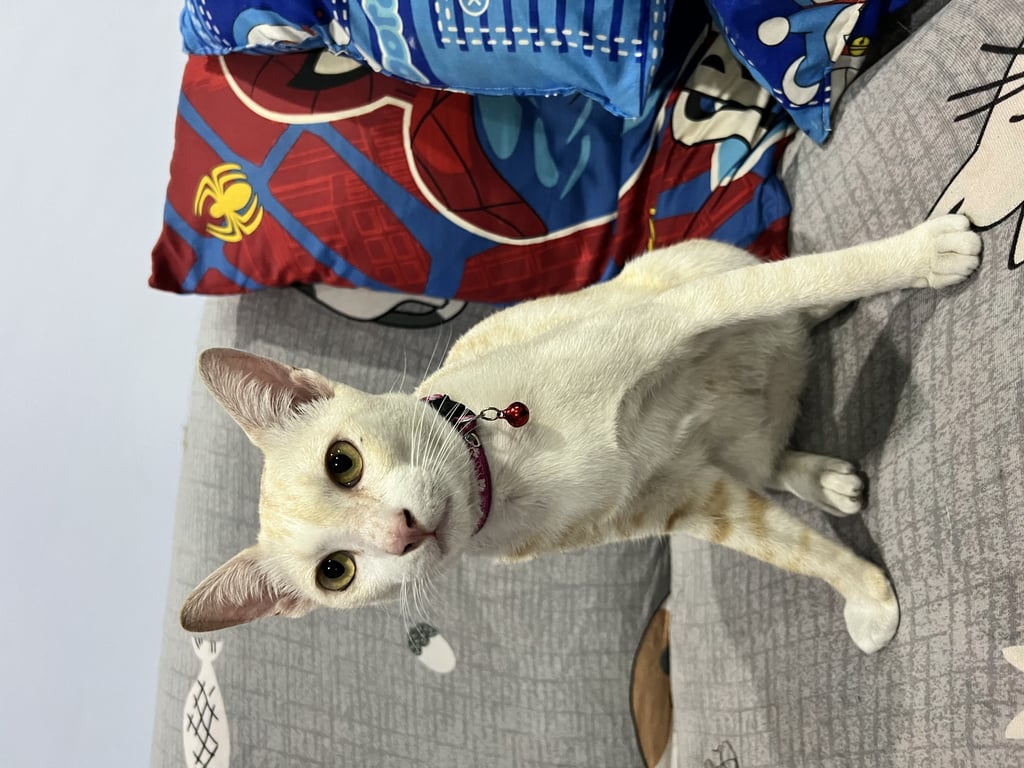 น้องเป็นแมวหลงมา เพศผู้ สีขาว-ส้ม น้องเชื่องมาก ติดคน มีปลอกคอสีม่วง ประกาศตามหาเจ้าของแล้ว แต่ไม่มีใครแสดงตัว ตอนแรกว่าจะเลี้ยงเอง แต่ตัวที่บ้านเข้ากับน่องไม่ได้ เด็กๆที่บ้านกลัวน้อง เลยตัดสินใจหาบ้านให้น้องค่ะ ขอคนที่นักแมวจริงๆและมีเวลาให้น้องนะคะ เพราะน้องจะขี้อ้อนและติดคนมากๆ