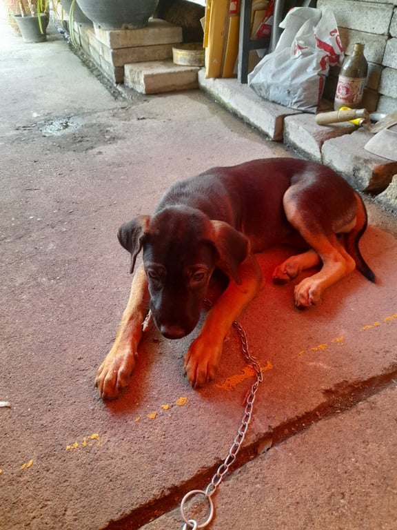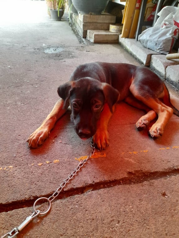 ลูกสุนัขเพศเมียทำหมัน ฉีดวัคซีนแล้ว เหลือ 1 ตัวยังไม่ได้บ้านพี่น้องได้บ้านหมดแล้ว น้องต้องถูกล่ามไว้ตลอดเวลาด้วยความซนของวัยเด็กไปขุดแทะของคนที่ไม่ชอบสุนัขก็มี