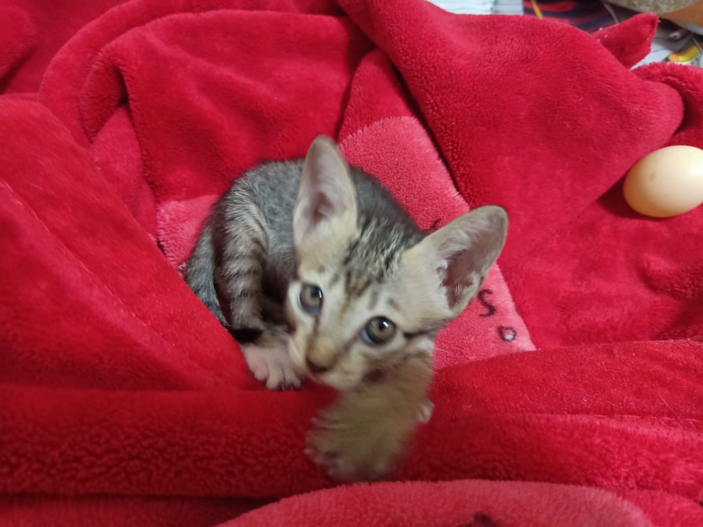 อายุน่าจะเดือนกว่าๆ เข้าห้อมน้ำเป็น กินอาหารเปียกได้ มีฟันแล้ว