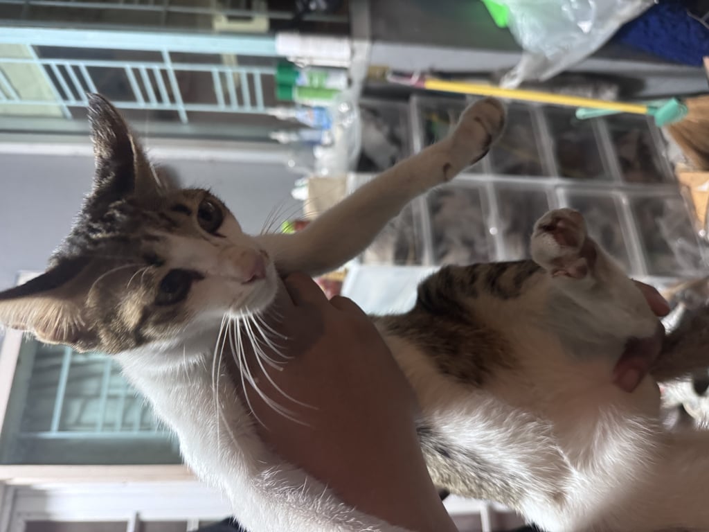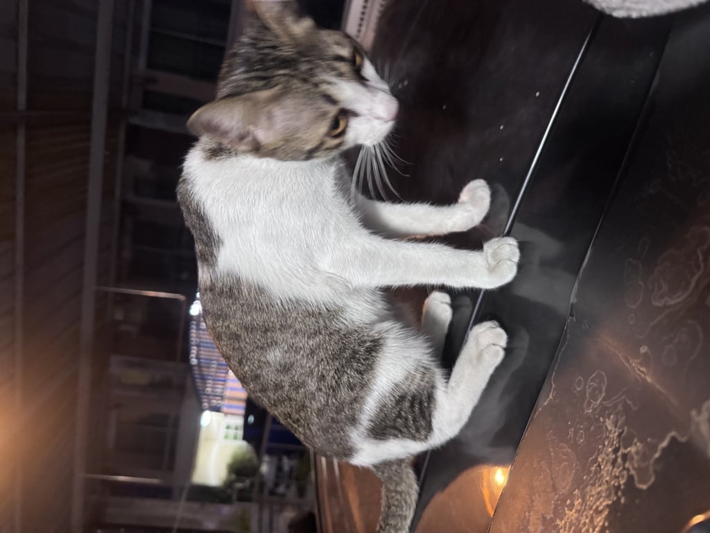 แมวเด็กประมาณ 4 เดือน ติดคน ขี้อ้อน วิ่งเข้าหาคน น่าจะหลงมา