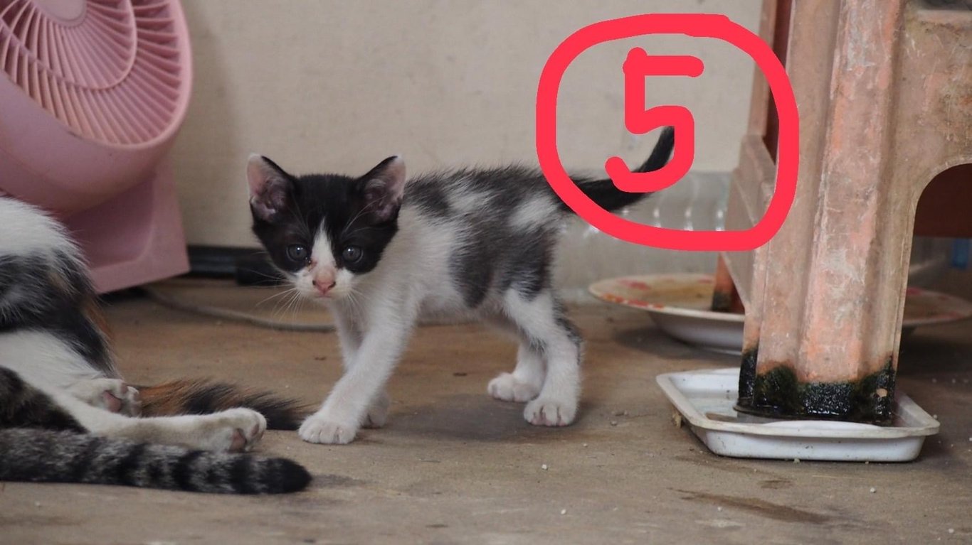 น้องเป็นแมวจรคะ แม่แมวคาบลูกมาคะ รวมทั้งหมด 6 ตัวค่ะ (แม่ 1ลูก5 คะ) ที่บ้านไม่สามารถดูแลน้องได้เยื่องจากแม่และลูกสาวเป็นภูมิแพ้และหอบหืดค่ะ ขอความเมตราให้น้องด้วยนะคะ น้อฃเข้ากระบะทรายเป็น ทานอาหารเม็ดได้คะ ปล.ตอนนี้น้องน่าจะอายุประมาณ เกือบ 2 เดือนค่ะ ติดต่อคุณแม่ เบอร์ 0863448280 ID line Wanwisa_d