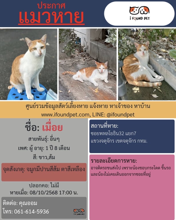 วันนี้ i FOUND PET ได้รวบรวมข้อมูลประกาศที่มีการแจ้งพบแล้วมาให้ไดัดูเป็นแนวทางกันครับ ว่าแต่ละท่านมีวิธีการตามหาน้องๆ อย่างไรกันบ้าน ถึงได้พาน้องๆ กลับบ้านได้ครับ