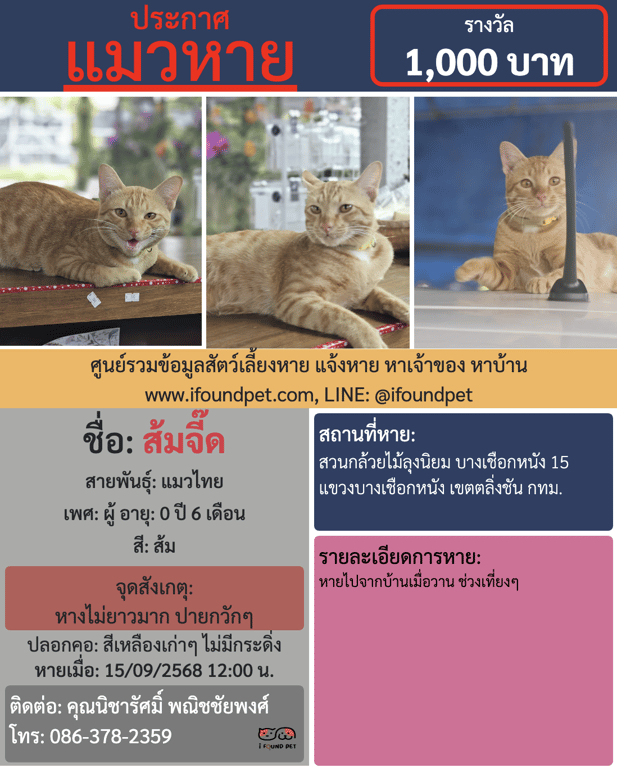 วันนี้ i FOUND PET ได้รวบรวมข้อมูลประกาศที่มีการแจ้งพบแล้วมาให้ไดัดูเป็นแนวทางกันครับ ว่าแต่ละท่านมีวิธีการตามหาน้องๆ อย่างไรกันบ้าน ถึงได้พาน้องๆ กลับบ้านได้ครับ