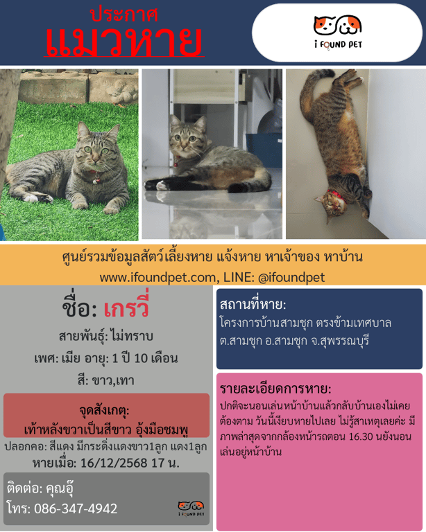 วันนี้ i FOUND PET ได้รวบรวมข้อมูลประกาศที่มีการแจ้งพบแล้วมาให้ไดัดูเป็นแนวทางกันครับ ว่าแต่ละท่านมีวิธีการตามหาน้องๆ อย่างไรกันบ้าน ถึงได้พาน้องๆ กลับบ้านได้ครับ