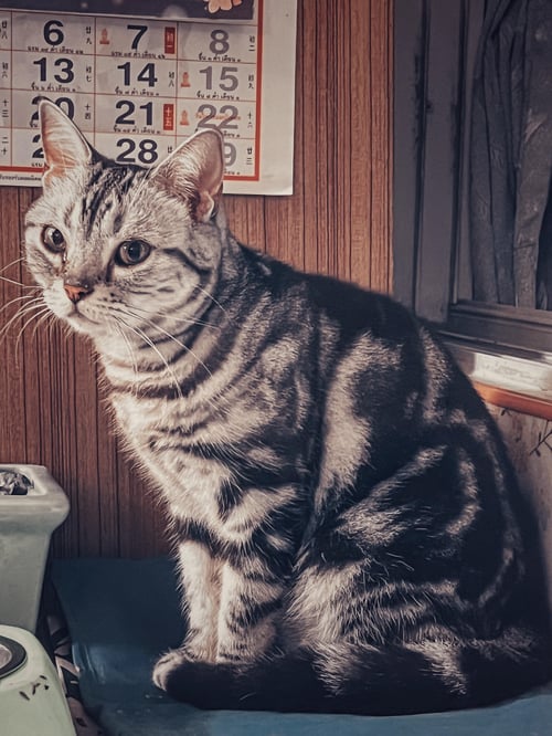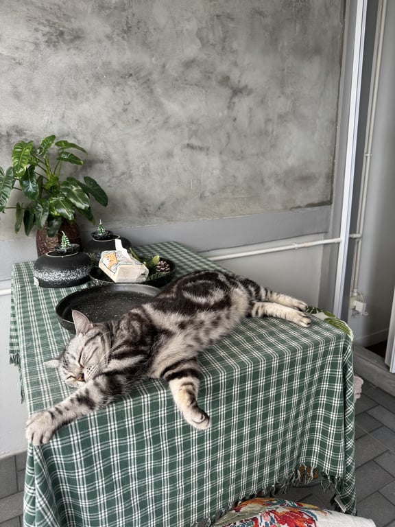 รอยตำหนิ: ลายขัดเจน น้ำหนักประมาณ 3 Kgน้องไม่ค่อยชอบคน แต่บางครั้งก็เข้าหาคน โดยเฉพาะเวลาหิว