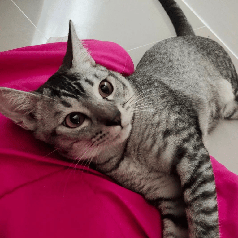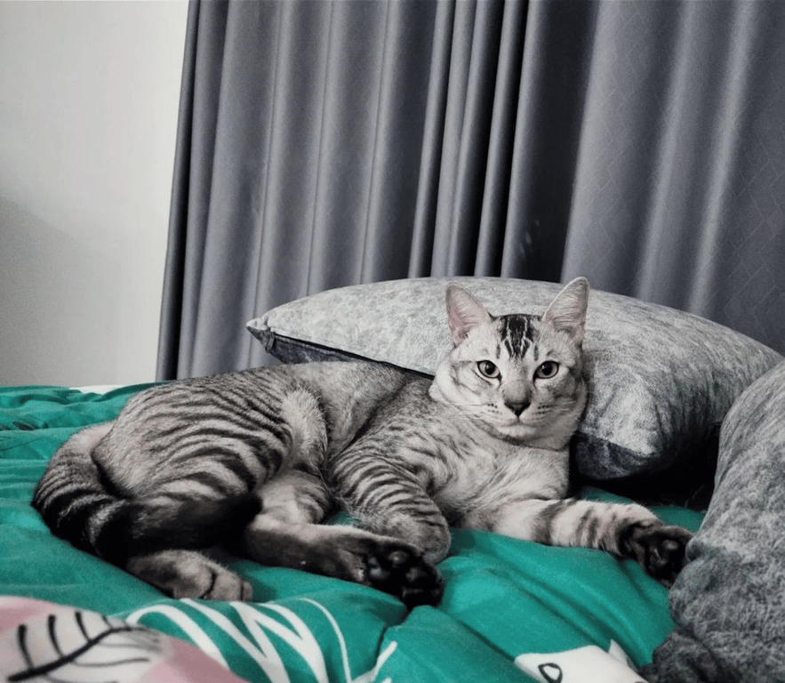 สี: เทาดำ มีลายที่ขาทั้ง 4 ข้าง