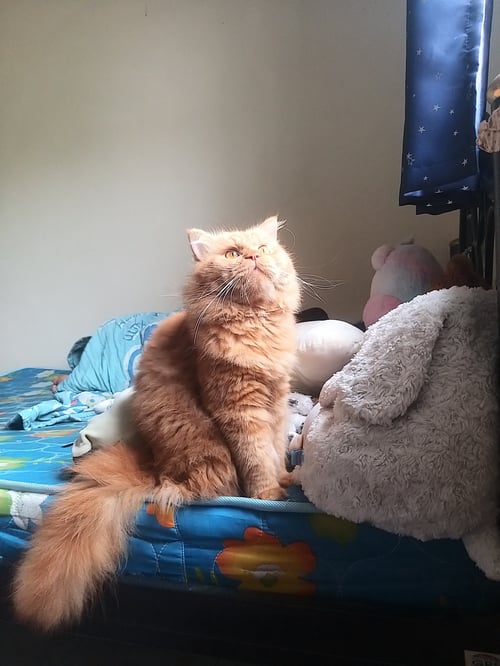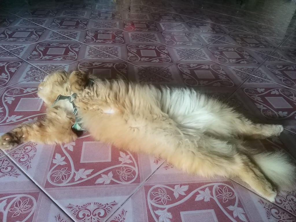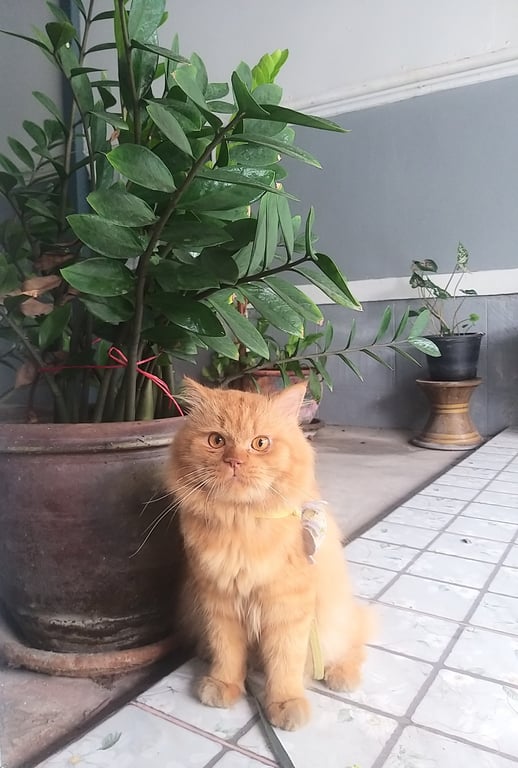 รอยตำหนิ: น้องสีส้มทั้งตัว หางยาวแต่ตรงโคนหางจะคดนิดนึงมีนิสัยขี้อ้อน ไม่กลัวคนแปลกหน้า ชอบอ้อนขอของกิน ไม่ดุ กัดบ้างถ้ารู้สึกไม่ปลอดภัย เล่นได้จับได้น้องไม่กัด ตอนหลุดออกไปน้องใส่เสื้อลายทหาร