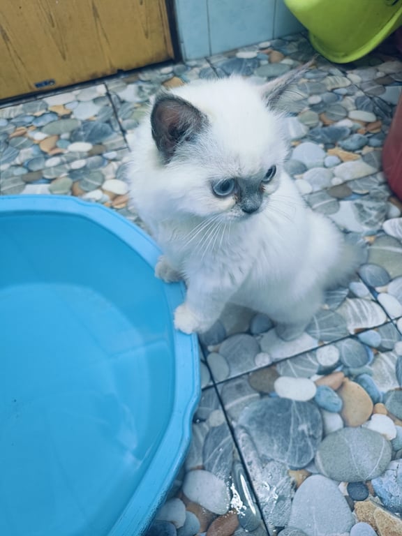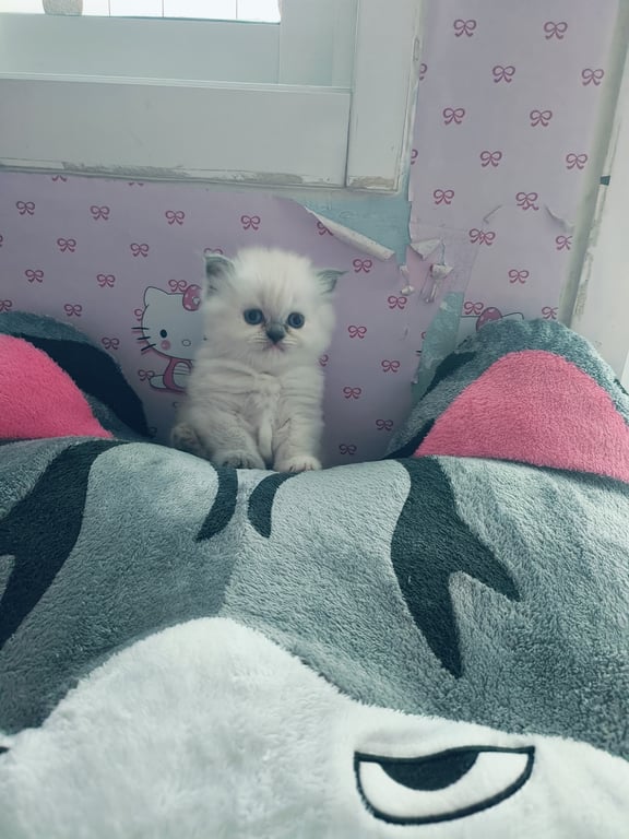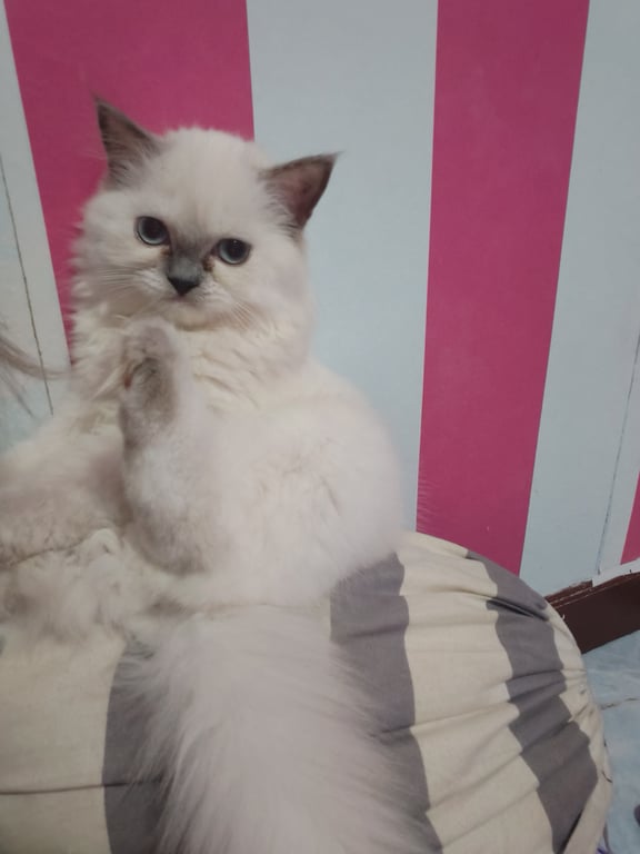 รอยตำหนิ: เท้าหน้าซ้ายไม่มีแต้มดำซน ขี้เล่น สีคล้ายหิมาลายัน เท้ามีแต้มดำทุกเท้ายกเว้น ไม่มีแต้มที่เท้าหน้าซ้าย จมูกดำ หูดำ หางดำ ตาสีฟ้า