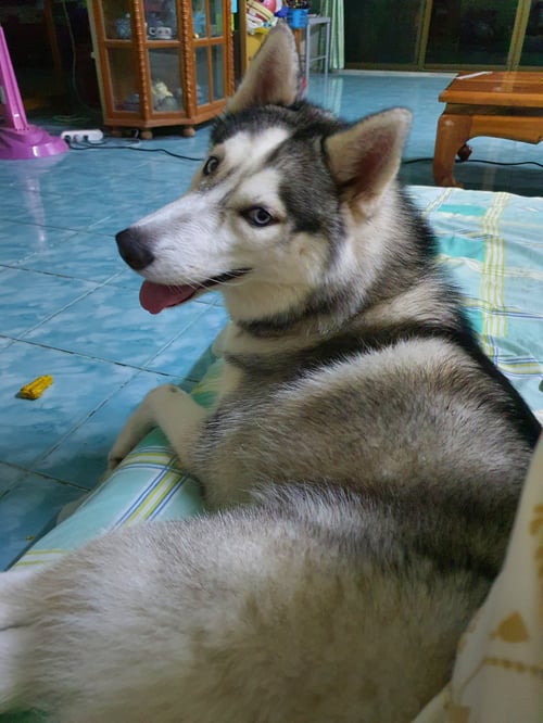 สี: ไซบีเรียน สแตนดาร์ด ตาสีฟ้า สีขาวดำออกเทาๆ
