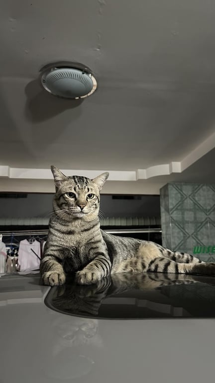 รอยตำหนิ: หน้าใหญ่ มีเหนียง ตาสีเหลืองน้ำหนัก 8 กิโล กินจุ ไม่มีปลอกคอ