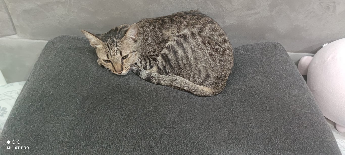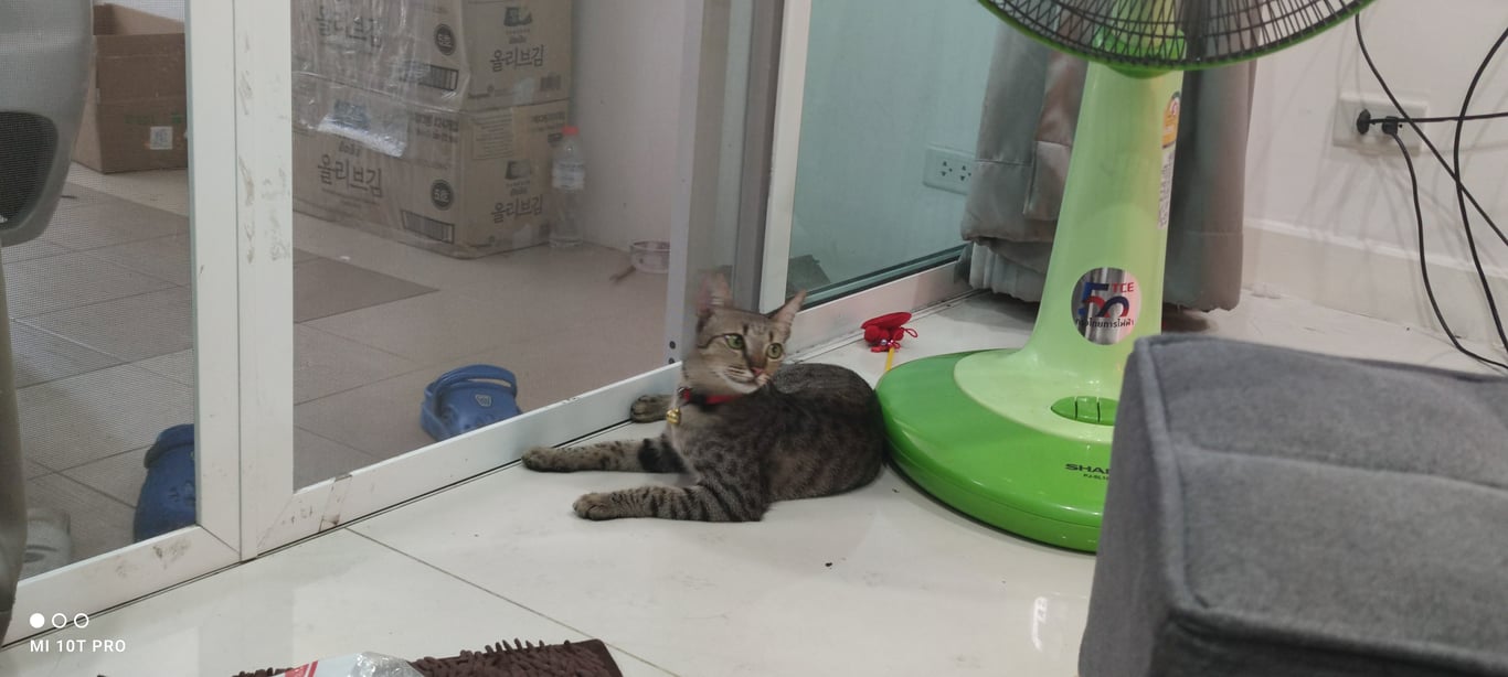 รอยตำหนิ: หูใหญ่ ลายพาดชัดเจน ใส่ปลอกคอและกระดิ่งสีเขียวถ้าคนแปลกหน้าเรียกชื่อจะหันทันที ใส่ปลอกคอปละกระดิ่งสีเขียว