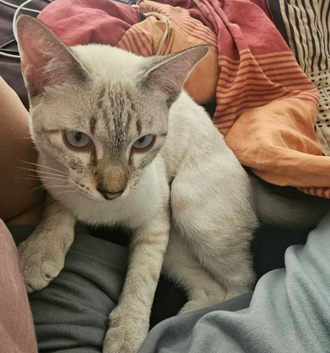 รอยตำหนิ: เหมือนมีก้อนไขมันบริเวณนมล่าสุดสวมปลอกคอสีน้ำตาล มีสลักชื่อกับเบอร์โทรไว้