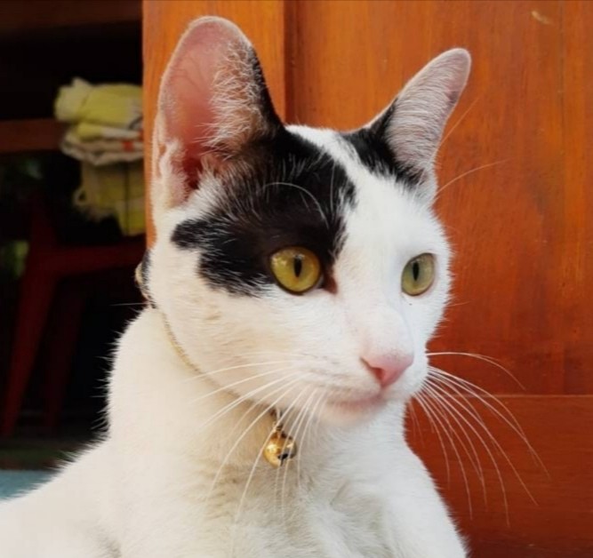 สี: ขาว มีสีดำบริเวณหูทั้ง2ข้าง กับหน้า