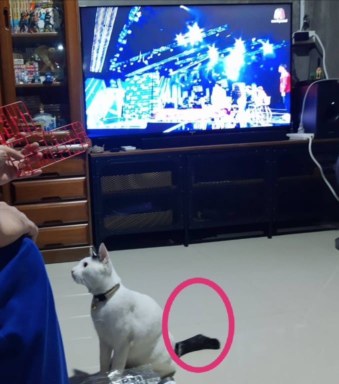 รอยตำหนิ: หางสีดำ ปลายหางงอ คด
