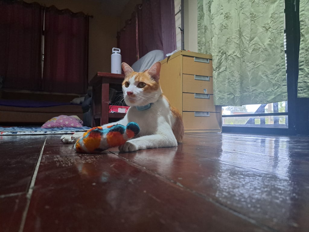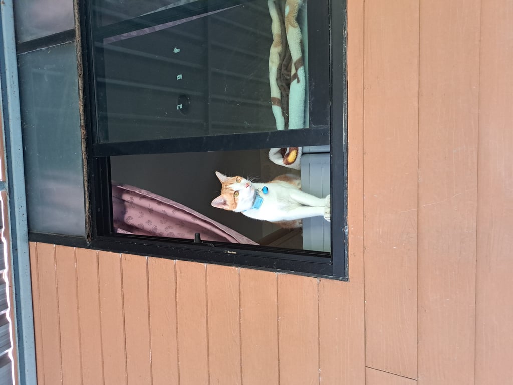รอยตำหนิ: แต้มสีส้มที่ริมฝีปากล่างและข้างจมูกด้านซ้าย พุงค่อนข้างย้อยตอนที่หาย ปลอกคอหลุด เลี้ยงระบบปิด น้องค่อนข้างขี้กลัว ขี้ระแวง