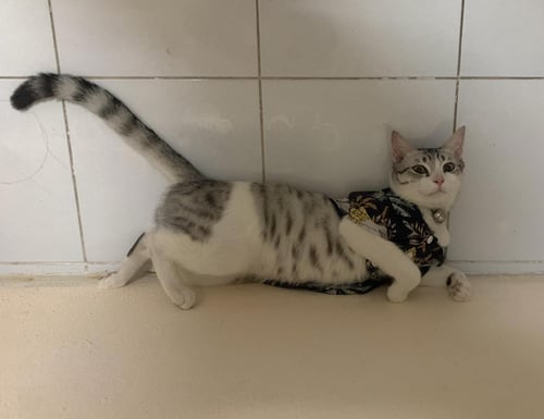 สี: ลายสลิด ขาว เทา จมูกชมพู หางยาว