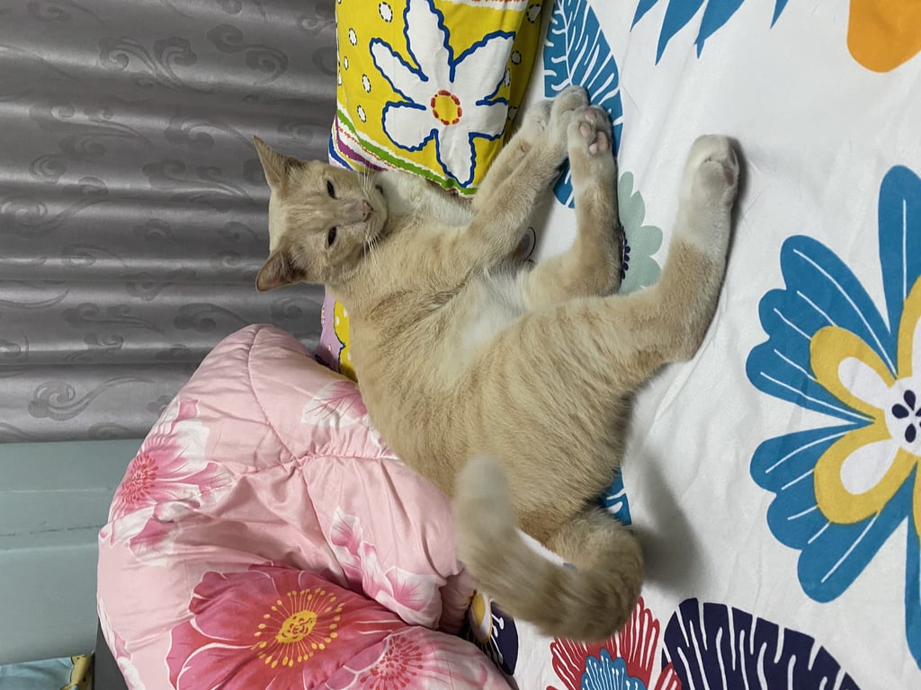 รอยตำหนิ: ตาสีฟ้า จมูกสีชมพู ตัวใหญ่ หางยาว ท้องขาว อกขาว ลำตัวมีลายริ้วๆบางๆขี้ตกใจ กลัวเสียงดัง ไม่ดุ เฟรนลี่