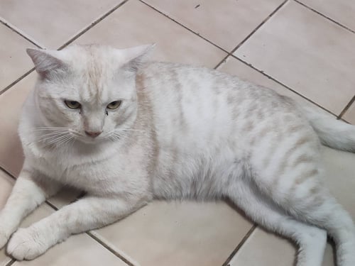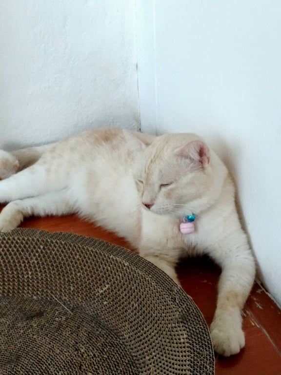 รอยตำหนิ: หางหักอายุ 3 ปี ดวงตาสีเหลือง นิสัยชอบวิ่งเล่น ส่องนก พลังเหลือๆ วันที่หายห้อยปลอกคือมีกระดิ่งสีชมพูกับสีฟ้า น้ำหนักประมาณ 6-7 โล