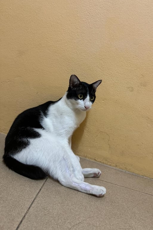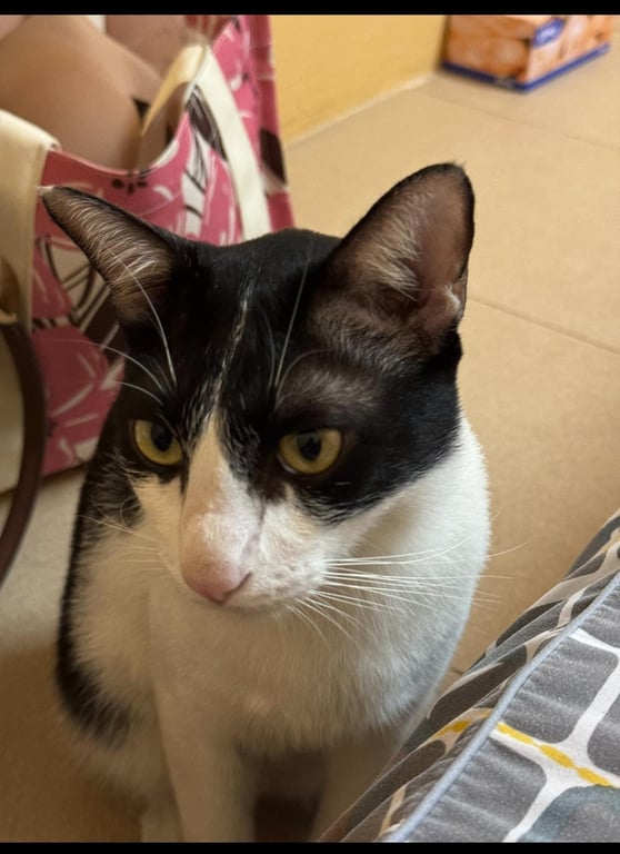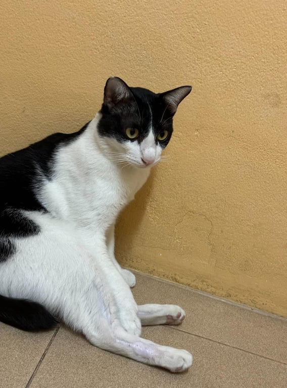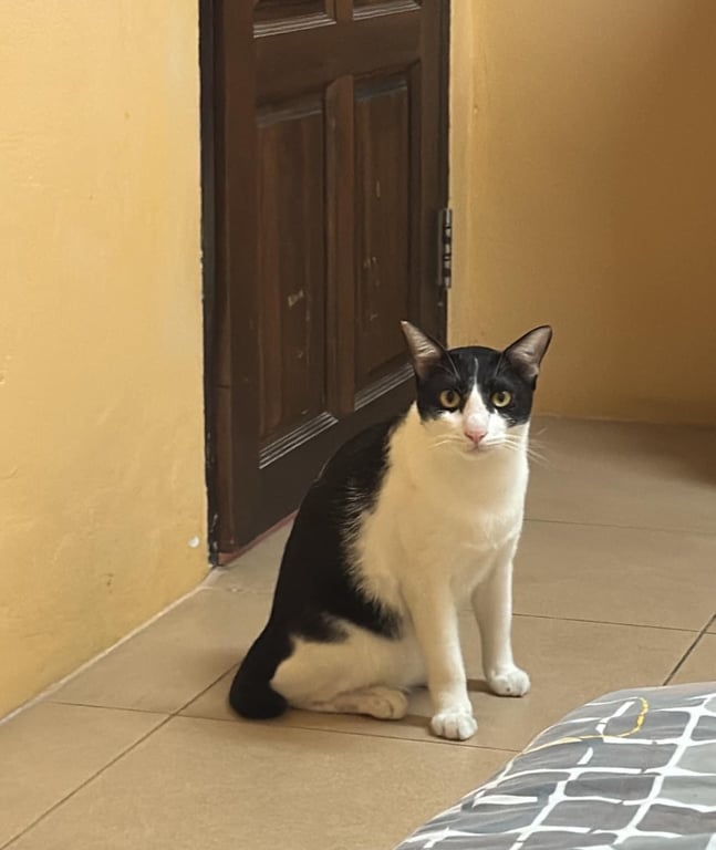 รอยตำหนิ: มีตำหนิแผลเป็นขนาดใหญ่ยาวที่ขาหลังและเท้าหน้าขวาหายจากบ้านแถวถนนท้ายนา กะรน ภูเก็ต แมวชอบพูดเสียงดัง แต่จี้ตกใจ