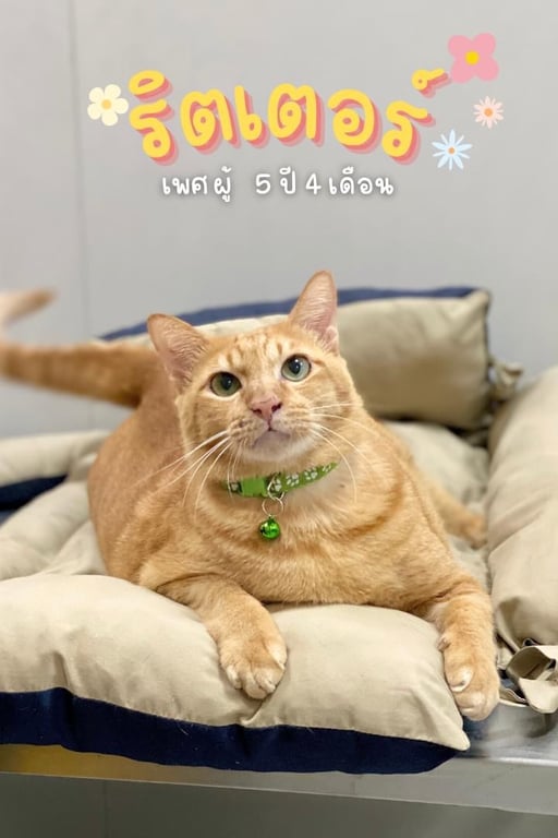 รอยตำหนิ: อ้วรกลม มีก้อนเนื้อโคนหางขี้อ้อน ขี้ร้อง กินเก่ง ชอบนอนหงาย เวลาเจอคนชอบร้อง เดินคลอเคลีย นิสัยเป็นมิตรมาก