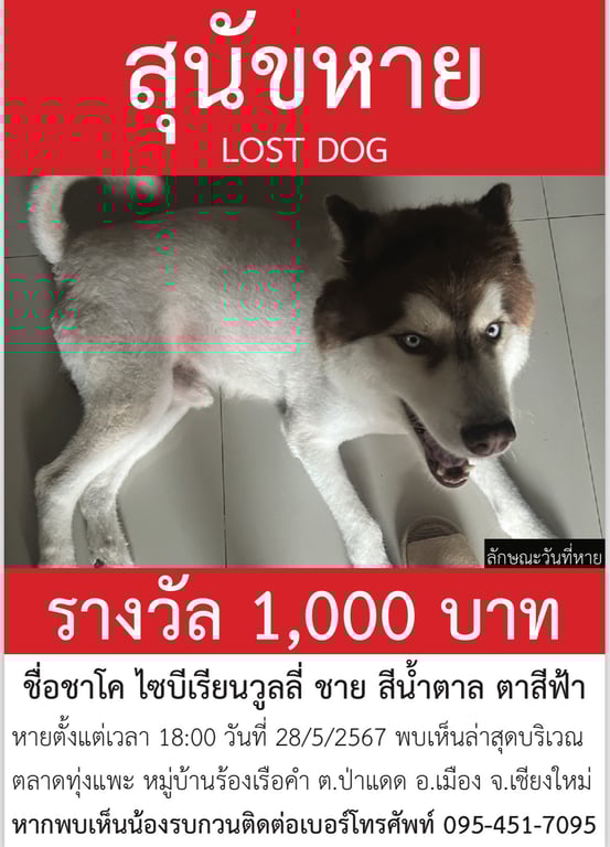 รอยตำหนิ: ตัดขนเกรียร เหลือแค่ขนตรงหัวน้องตัวใหญ่ แต่นิสัยดี เฟรนลี่ ไม่เห่า ไม่กัดคน