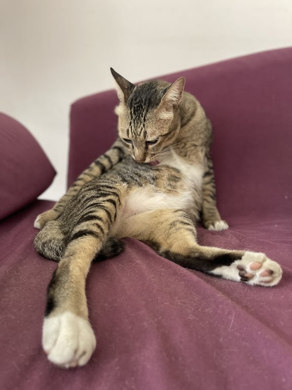 รอยตำหนิ: หางกุดปลาย หูแหว่งเล็กๆทั้ง 2 ข้าง หลังหูขวาไม่มีขน สีเท้าเหมือนใส่ถุงเท้าเล็กน้อยทั้ง 4 ข้างขี้อ้อนกับคนที่เขาไว้ใจ ชอบร้องเวลาคนเรียกชื่อทอมมี่ ไม่กัดไม่ขู่คน กลัวเสียงรถ จะค่อนข้างตกใจกับเสียงดัง