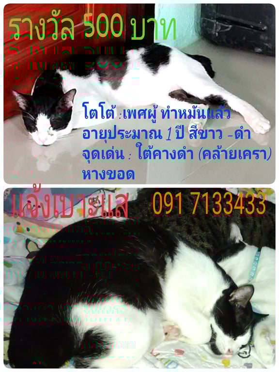รอยตำหนิ: หางกวัก ใต้คางดำคล้ายเครา มีปอกคอเป็นแถบสะท้อนแสง