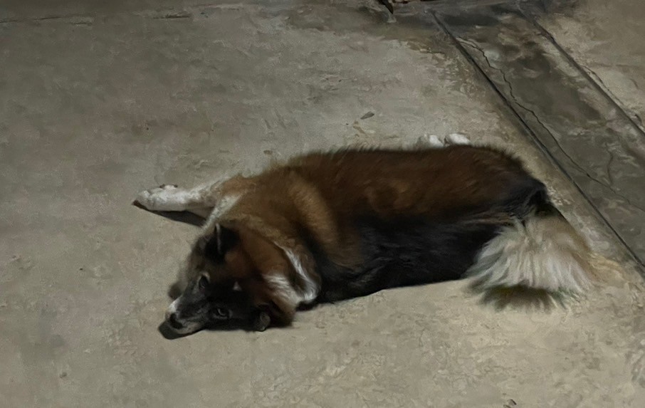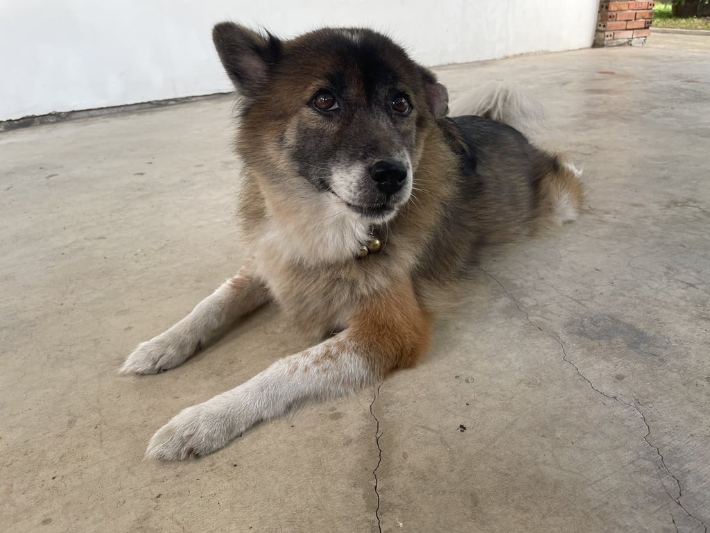 รอยตำหนิ: หูข้างซ้ายตก ใส่โซ่ปลอกคอกระดิ่งมีกระดิ่งที่คอ 2 ลูก ขนฟูๆ เป็นบางแก้วตัวเล็ก