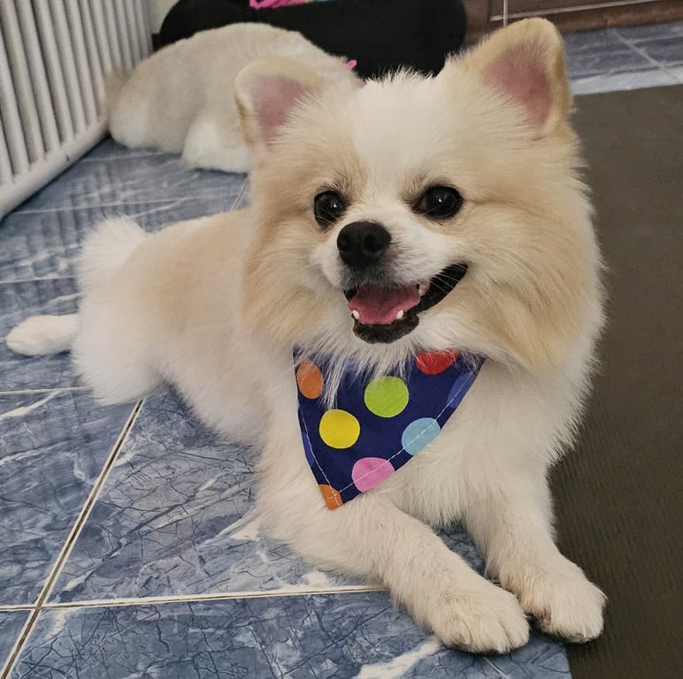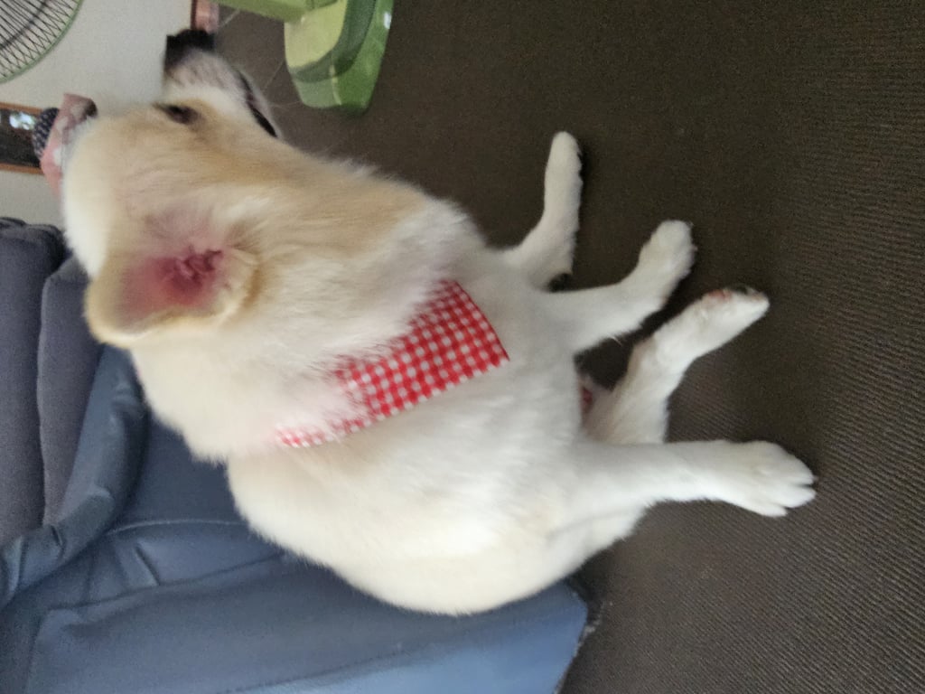 รอยตำหนิ: หางตั้งฟู จมูกเป็นรอยแผลรูปคล้ายหัวใจขี้กลัว แต่เห่าเก่ง ชอบขู่แต่ไม่เคยกัดใคร