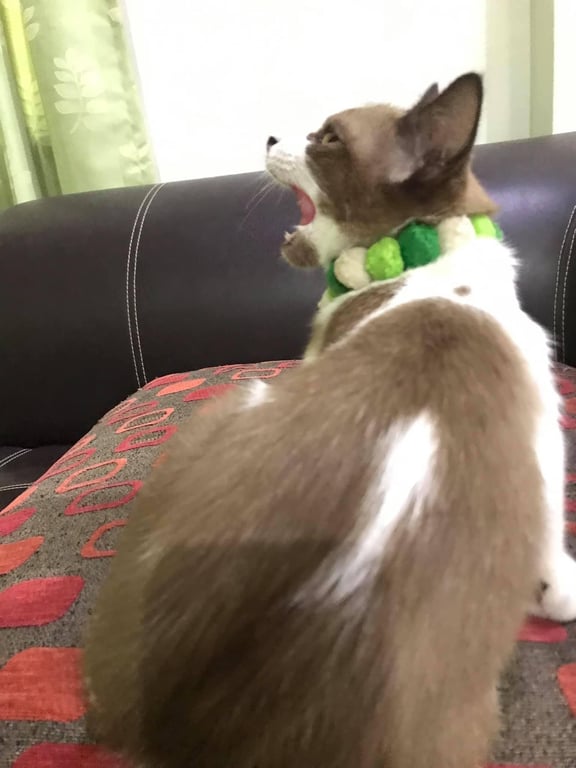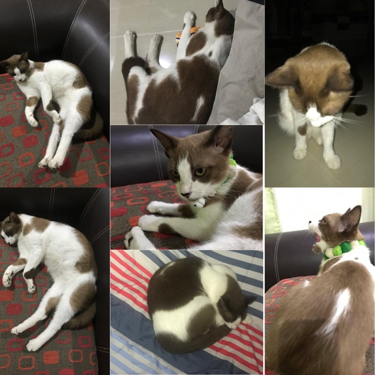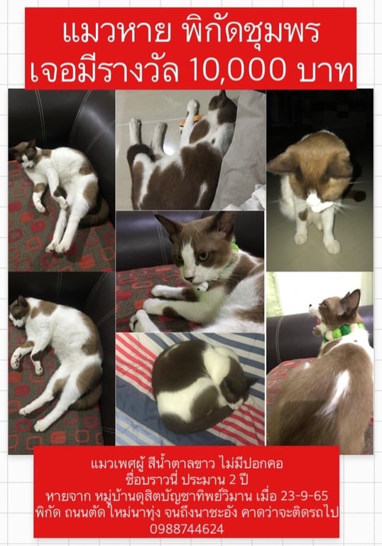 รอยตำหนิ: ลายธนูขาวกลางหลัง คางน้ำตาลขี้อ้อน ไม่กลัวคน เรียกบราวนี่จะร้องขานรับ