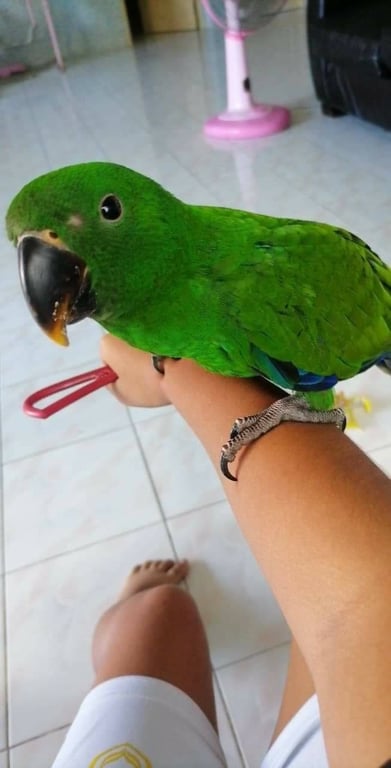 สี: ตัวสีเขียวใหญ่ในปีกสีแดง