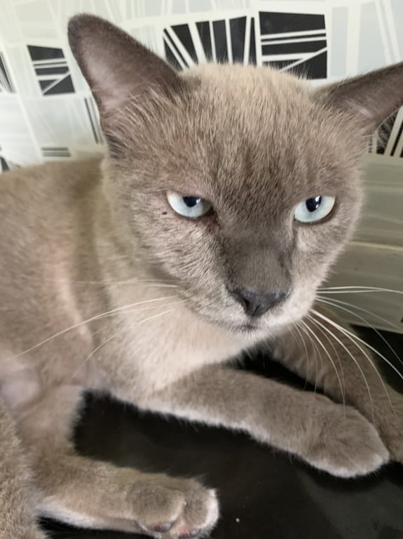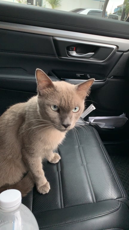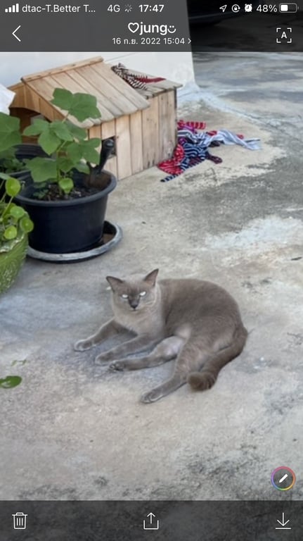 รอยตำหนิ: แมวสูงอายุ หน้าดุมาก แต่ไม่กัด ร้องเหมียวๆเบาๆ เป็นมิตรมากๆสีเทาทั้งตัว ไม่ได้ใส่ปลอกคอ