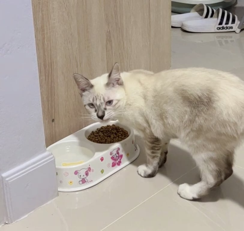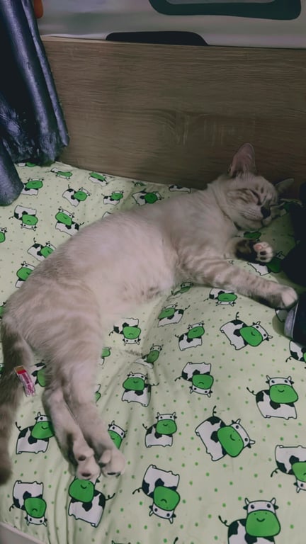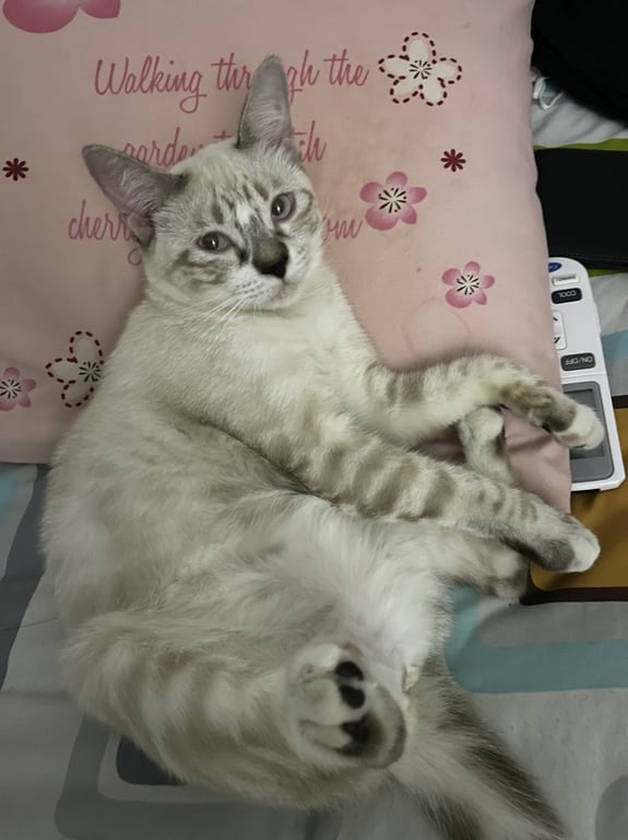 รอยตำหนิ: หู และหางสีดำอ่อนๆ หน้ายังไม่สีดำ