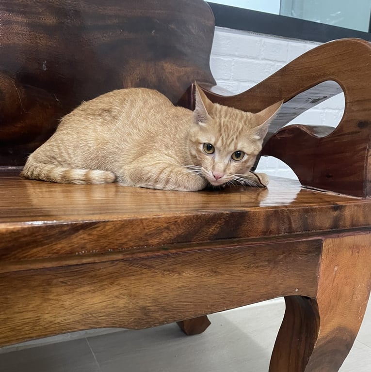 มีสีส้ม หน้าผากมีรูปตัวMชัดเจน น้องลักษณะเหมือนใส่แว่นตา ขี้กลัว ตื่นคน