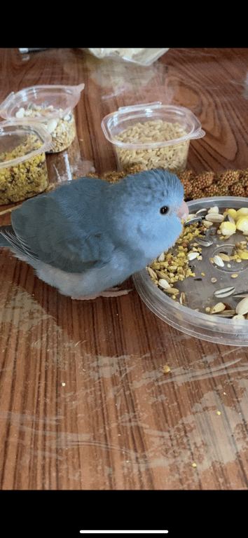 รอยตำหนิ: น้องเด็กมาก ขี้อ้อน ติดคน ชอบขึ้นมือ ตัวเมียเป็นสีฟ้าล้วน ปากสีชมพู