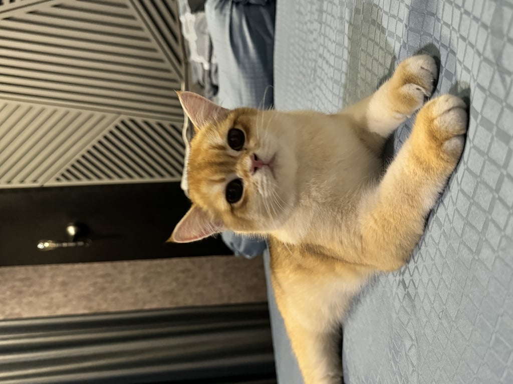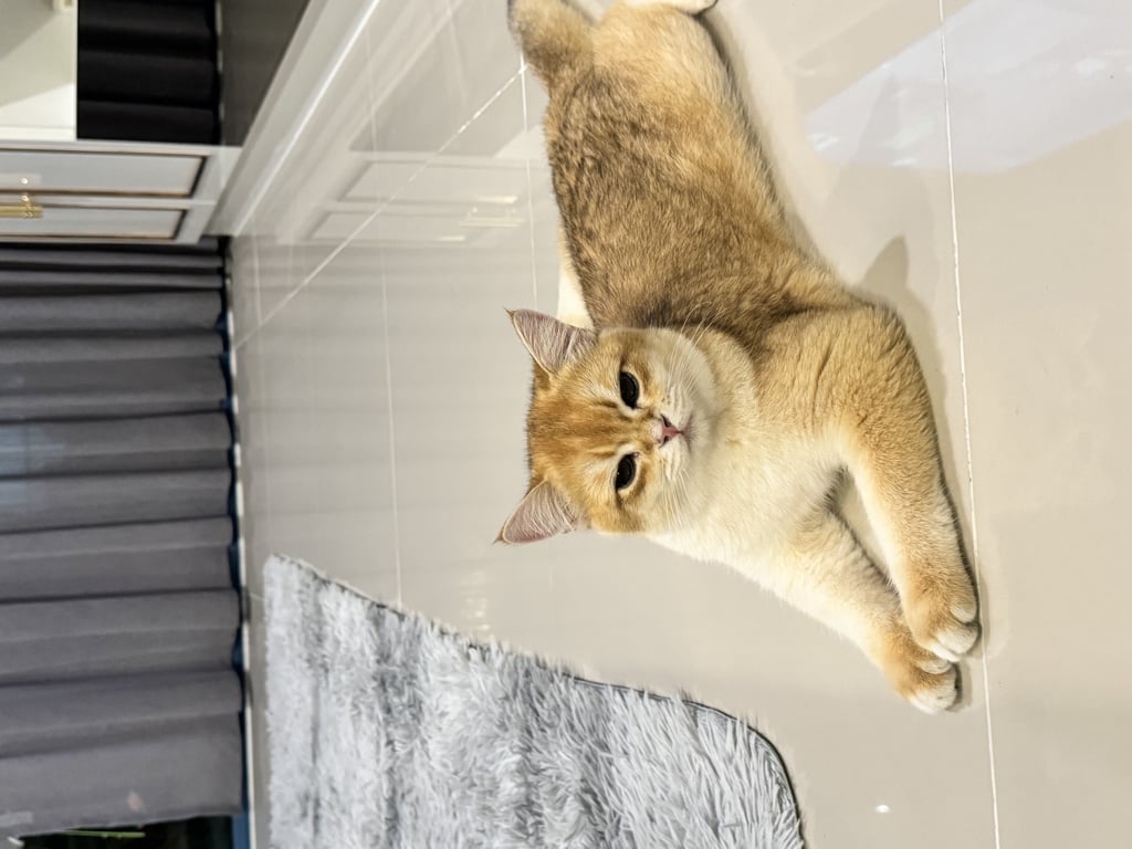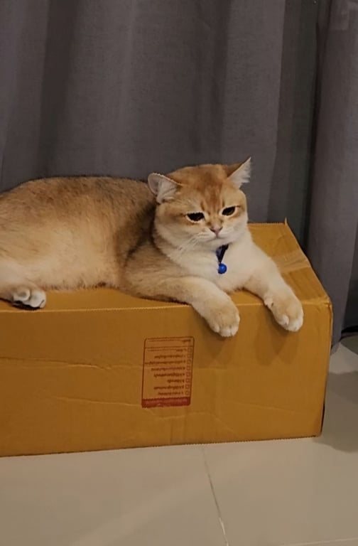 รอยตำหนิ: ปลายหางมีสีดำ และสวมปลอกคอสีน้ำเงินน้องไม่ดุ เป็นมิตรกับคน แต่ร้องกลัวเสียงดัง จะชอบแอบตามซอกมุม