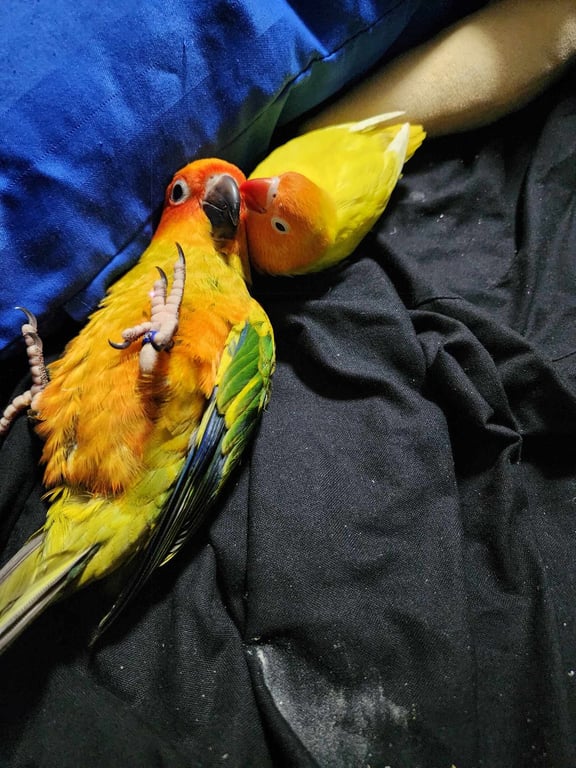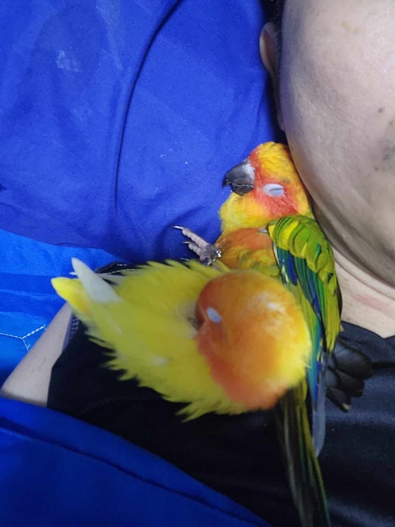 รอยตำหนิ: น้องมีห่วงสองข้าง หางแหว่งน้องติดคนมาก น้องแหว่งนิดหน่อย ปีกไม่ได้ขลิบ น้องชอบนอนซุก ร้องเก่งเวลาไม่ได้อยู่กับเจ้าของ