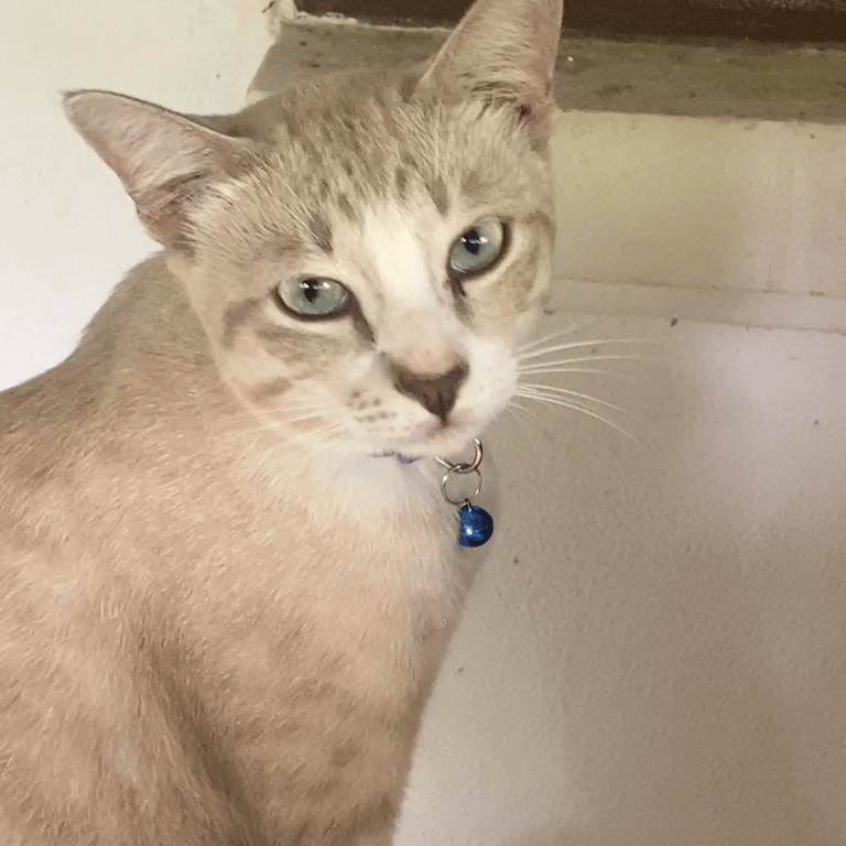 ตาสีฟ้าๆเขียว ใส่ปลอกคอสีน้ำตาล