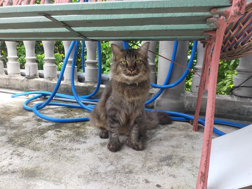 น้องเป็นแมวพันธุ์ผสม ขนจะพองๆหยิกๆฟู ตาสีเหลือง กลัวเสียงกระดิ่ง(แต่ไม่เยอะมา)